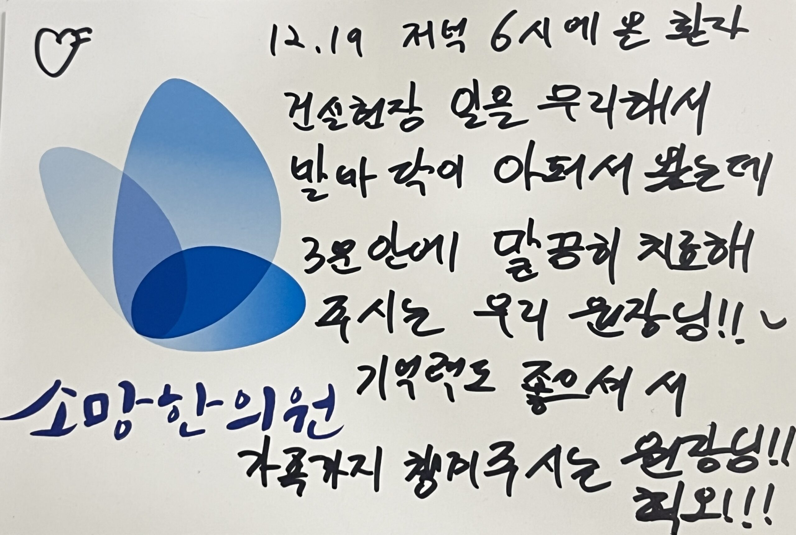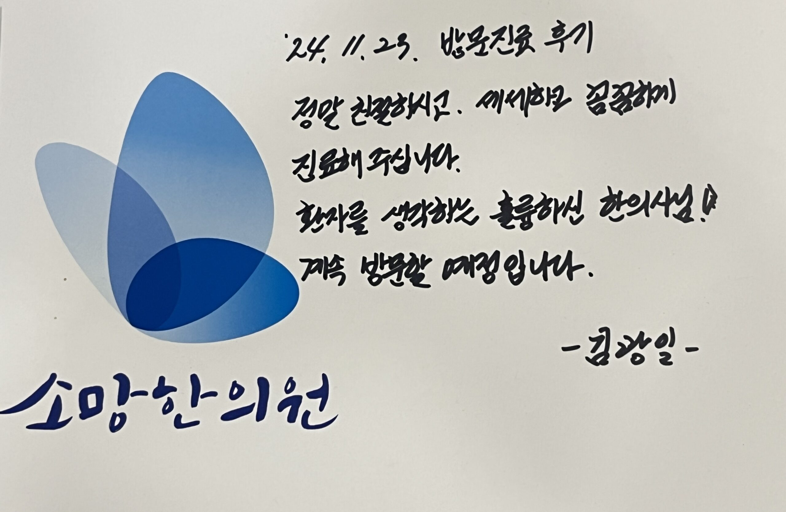 진료실 안팎에서, 환자의 몸과 마음 모두를 살피는 진료를 실천하고 있습니다.